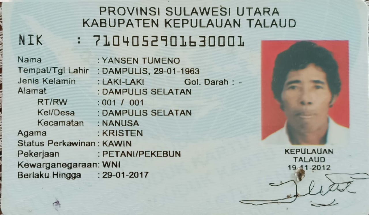Sekitar pukul 17.00 WITA, saksi juga sempat melihat korban sudah kembali melaut.Sementara itu, berdasarkan pengakuan, anak korban, Susi Tumeno (34), bahwa ayahnya pergi melaut sendiri pada waktu itu dan hingga kini tak kunjung kembali.