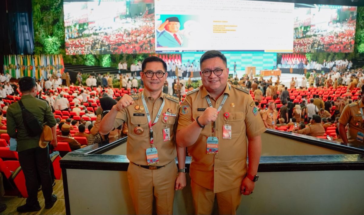 BOGOR, faktadigital.com- Bupati Minahasa Utara Joune Ganda dan Wakil Bupati Kevin William Lotulung (JGKWL) tampak kompak menghadiri Rapat Koordinasi Nasional (Rakornas) Pemerintah Pusat dan Daerah Tahun 2026 di Sentul International Convention Center (SICC), Bogor, Jawa Barat, Senin (2/2/2026).