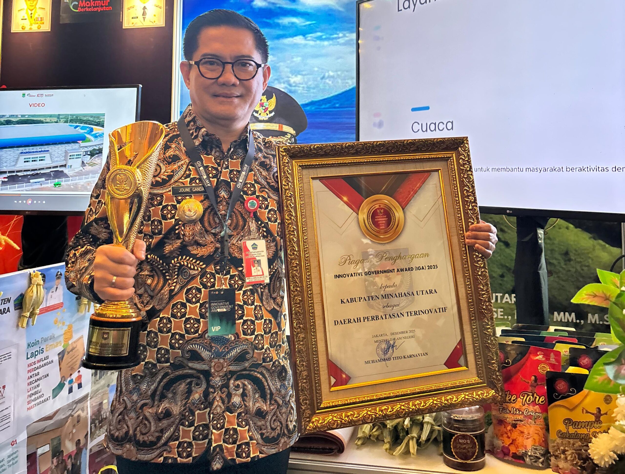 Bupati Joune Ganda yang hadir langsung menerima penghargaan itu menyatakan capaian ini bukan sekadar pengakuan, tetapi bukti nyata bahwa Minahasa Utara terus bergerak maju menata diri sebagai daerah yang adaptif, kreatif, dan siap bersaing.