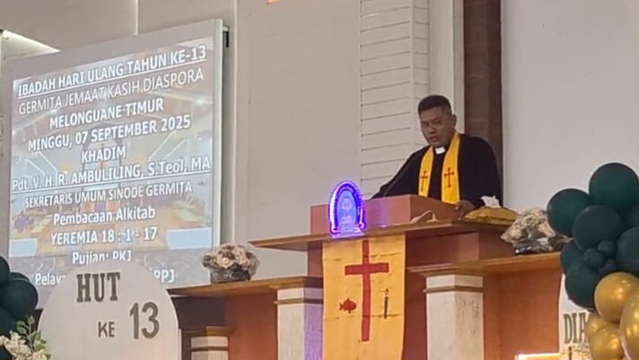 Diketahui, Ibadah dipimpin langsung Sekretaris Umum BPMS GERMITA, Pdt. Van Heifel Radon Ambuliling, S.Teol., MA.