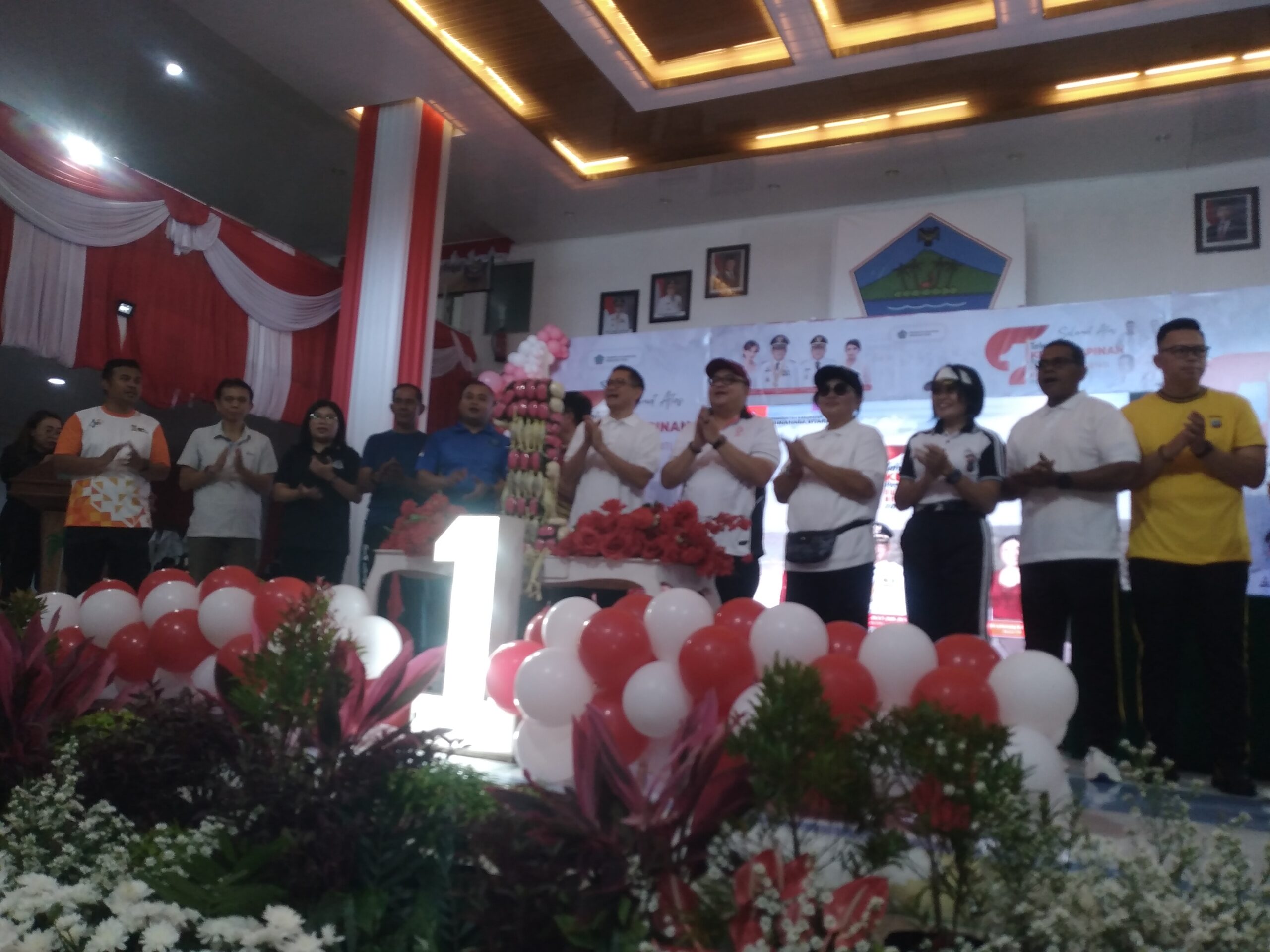 Sebelum pelaksanaan ibadah, jajaran pemkab Minut melaksanakan jalan sehat yang start dari JG Center dan finish di kantor Pemkab Minut.