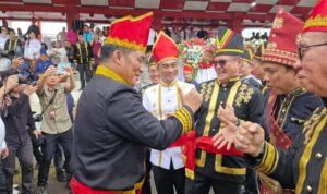 Nampak Gubernur dan jajaran memakai pakaian adat minahasa termasuk Bupati Minahasa Utara (Minut) Joune Ganda.
